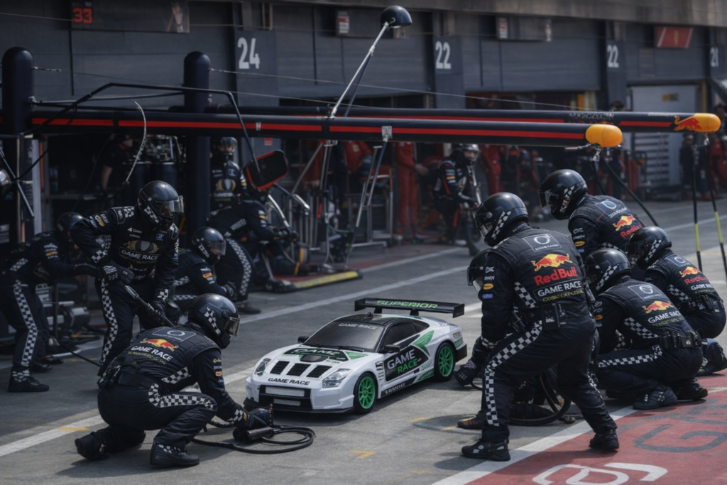 Simulación tipo F1 donde los participantes lideran equipos, gestionan recursos, analizan KPI y toman decisiones estratégicas en un entorno de alta presión.